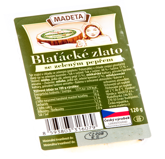 Blaťácké zlato Madeta se zeleným pepřem120gSkladem39,9 Kč/ ks